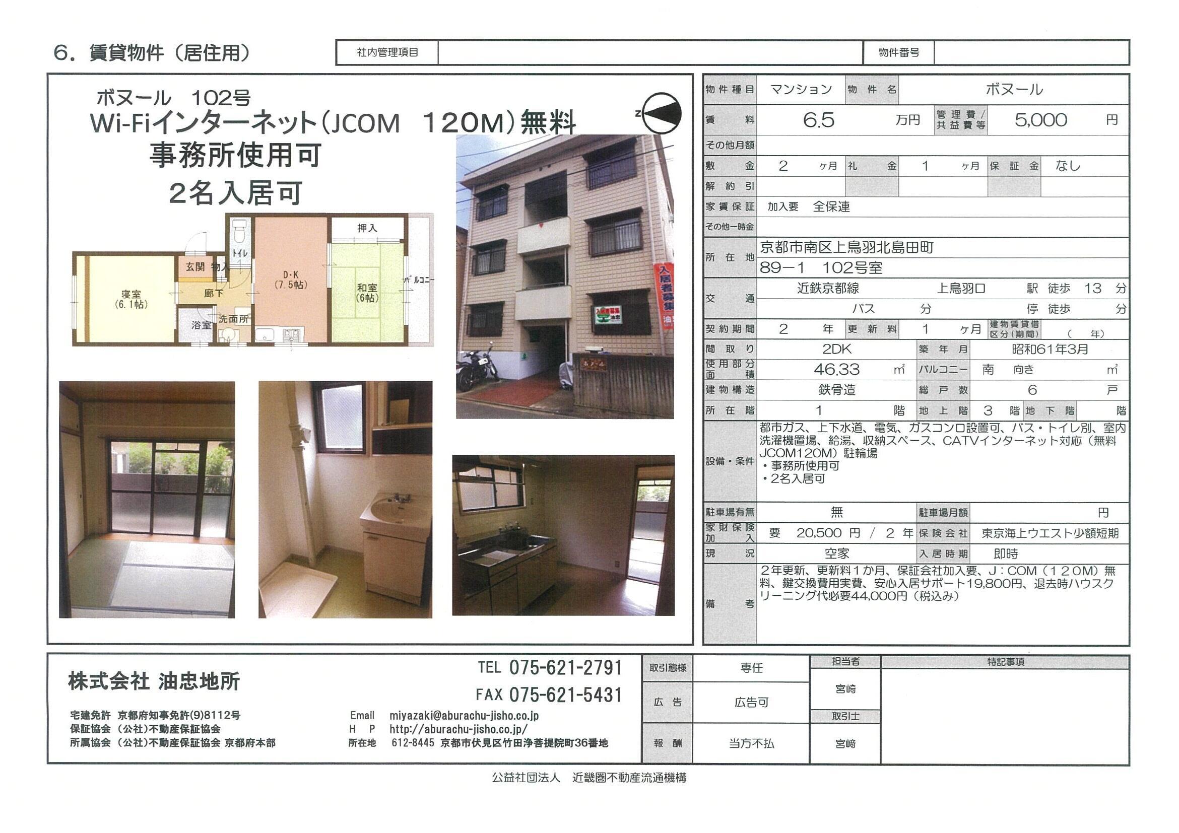 【賃貸物件 マンション】ボヌール(京都市南区上鳥羽北島田町)